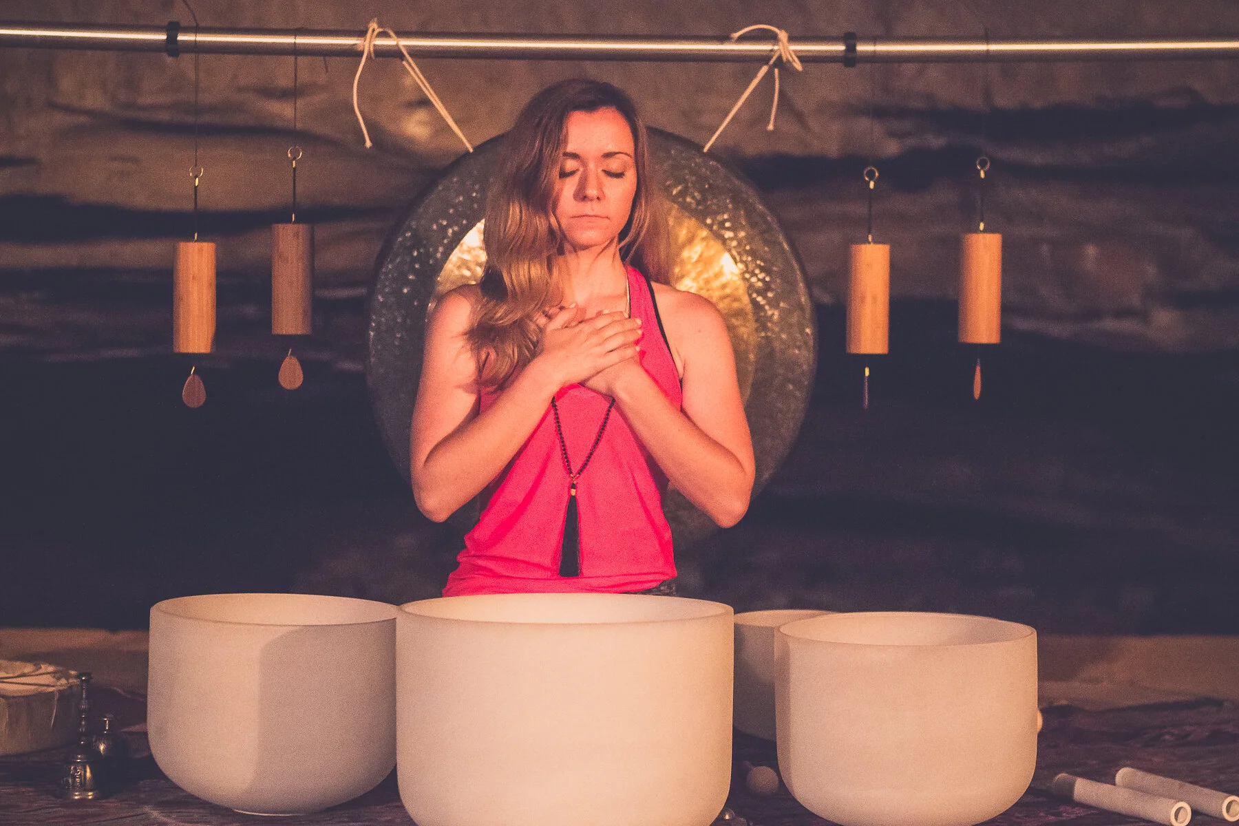 What to bring? Yoga Mat Water And anything that will make you feel more comfortable laying on the floor. (blanket, pillow, bolster, yoga mat, etc.) Sound Healing has shown to support stress reduction, pain relief, and promote restful sleep. Some of the most frequent benefits people have experienced in a Sound Bath Immersion included: