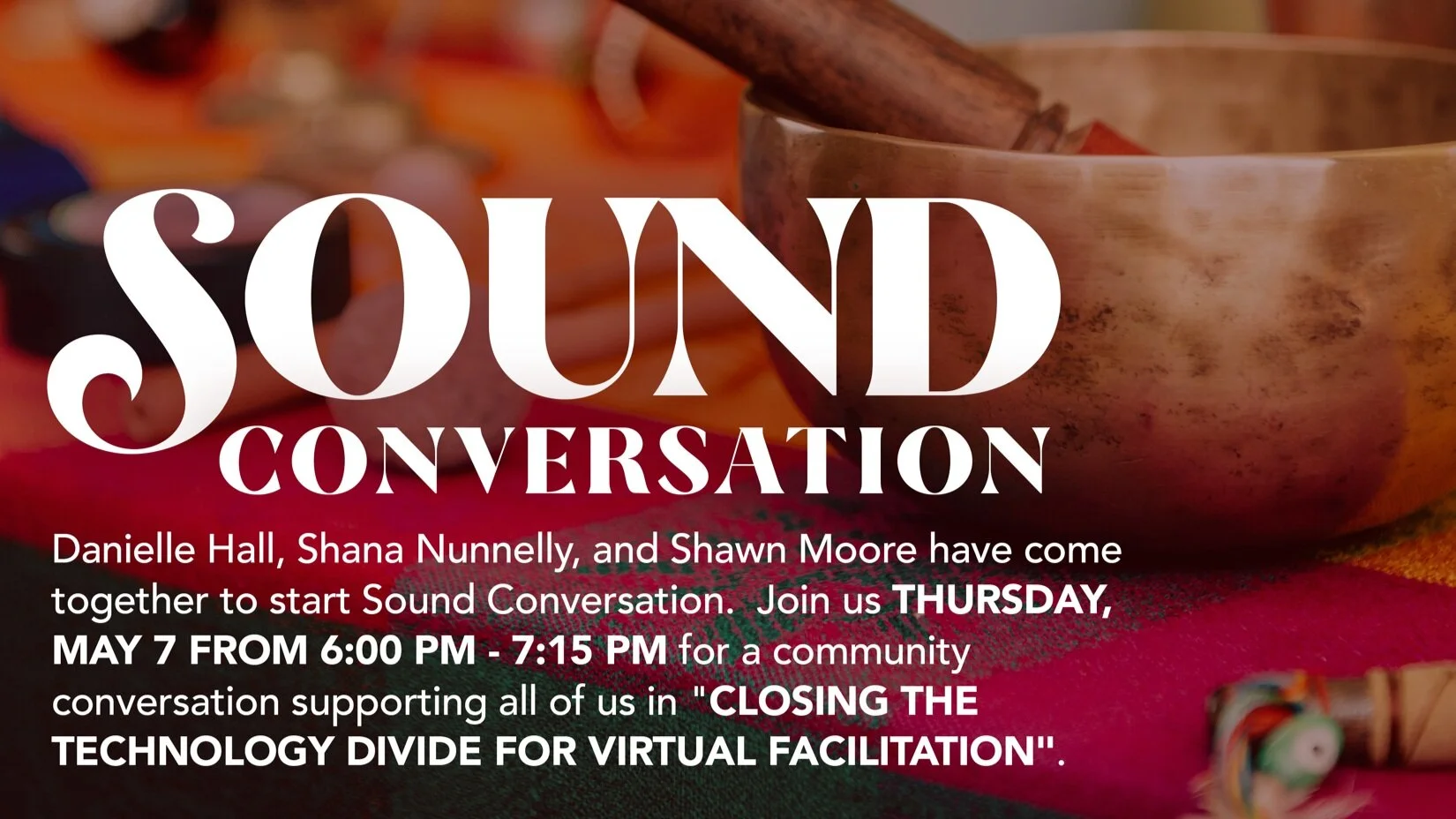 Danielle Hall, Shana Nunnelly, and Shawn Moore have come together to start Sound Conversation. Join us Thursday, May 7th from 6:00pm - 7:15pm for a community conversation supporting all of us in "Closing the Technology Divide for Virtual Facilitation".